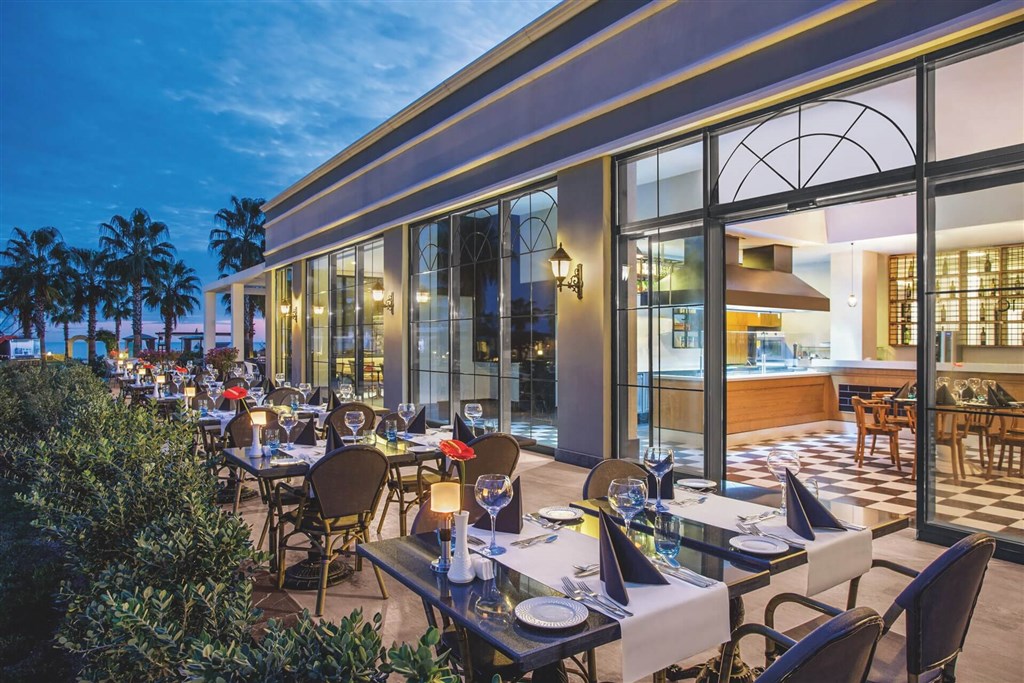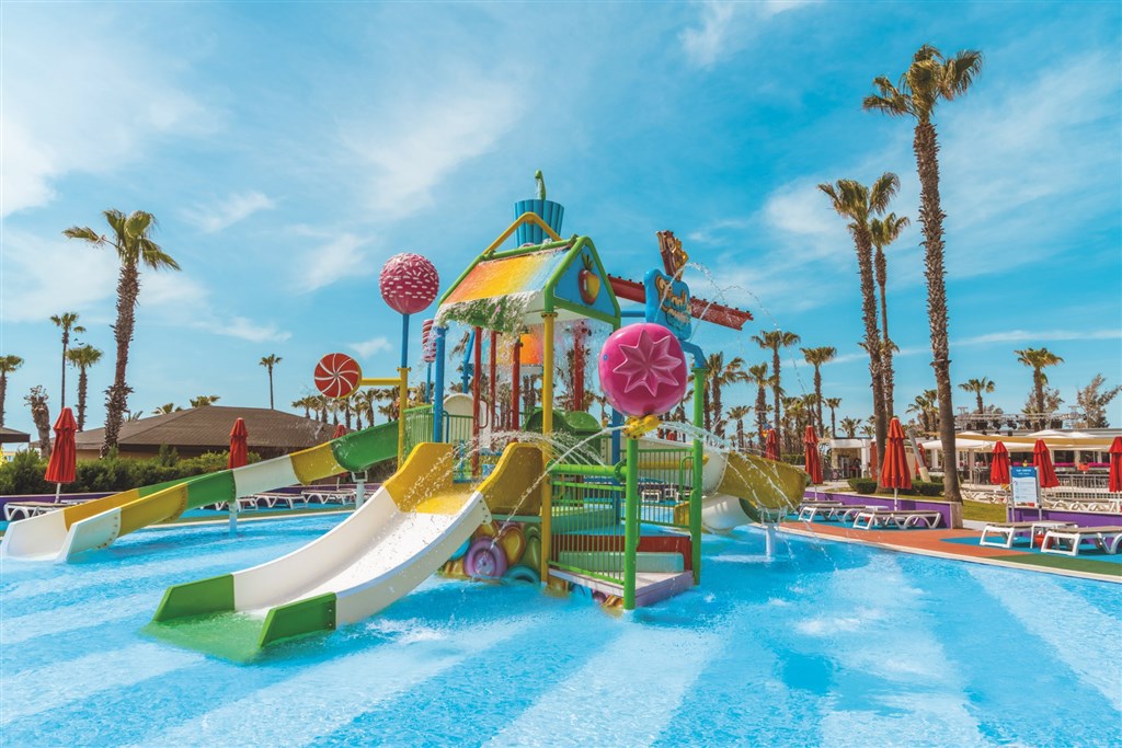 Vybavenievstupná hala s recepciou • hlavná reštaurácia • lobby bar s 24-hodinový all inclusive servisom • pool bar • snack bar • Vitamin bar • kaviareň • disco bar • 5 a´la carte reštaurácií (za poplatok) • bazénový komplex • relaxačný bazén • detský bazén so šmykľavkami • hracia plocha s detskými vodnými atrakciami • veľkolepý aquapark • vnútorný bazén • vnútorný detský bazén • SPA a wellness centrum (masáže za poplatok) • turecké kúpele a sauna • fitness centrum • aerobik • stolný tenis • šípky • boccia • vodná gymnastika • vodné pólo • minigolf • hracia miestnosť • miniklub s množstvom atrakcií a animácií • baby kútik (mikrovlnná rúra, ohrievač kojeneckých fliaš) • kinosála • tenisový kurt (lekcie za poplatok) • plážový volejbal • ponuka rôznych vodných športov na pláži (za poplatok) • medzinárodné hotelové animácie • karaoke • živá hudba a profesionálne večerné show • wifi